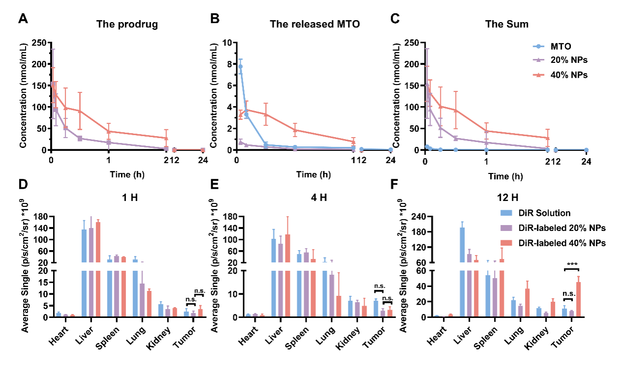 图4. 20% NPs和40% NPs的体内药动学和组织分布。
