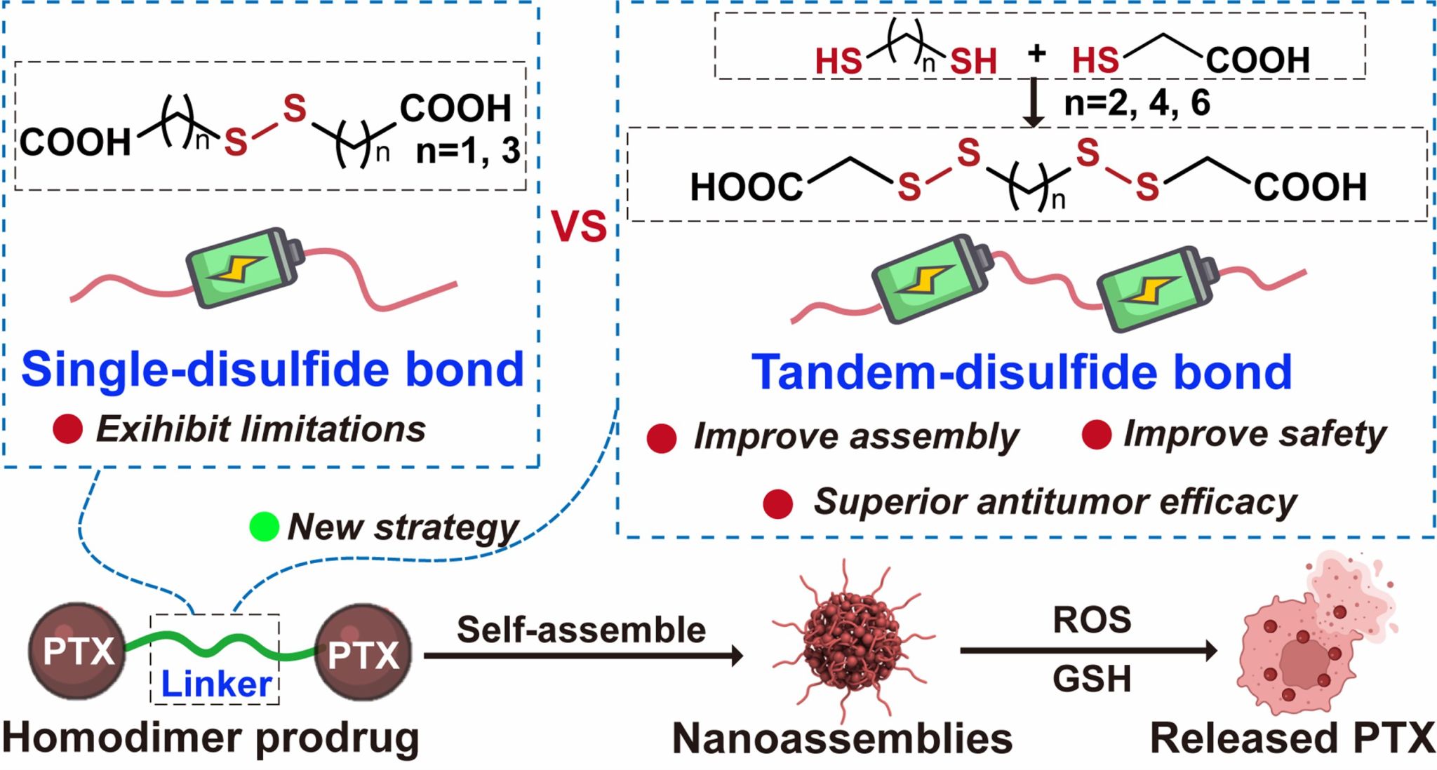 近日,公司药剂学科孙进科研团队在化学领域国际权威期刊J. Am. Chem. Soc.(IF:14.4)发表了碳原子间隔的“串联型”双二硫键桥连同二聚体前药纳米组装体的最新研究进展,题目为:”Carbon-spaced tandem-disulfide bond bridge design addresses limitations of homodimer prodrug nanoassemblies: Enhancing both stability and activatability”。